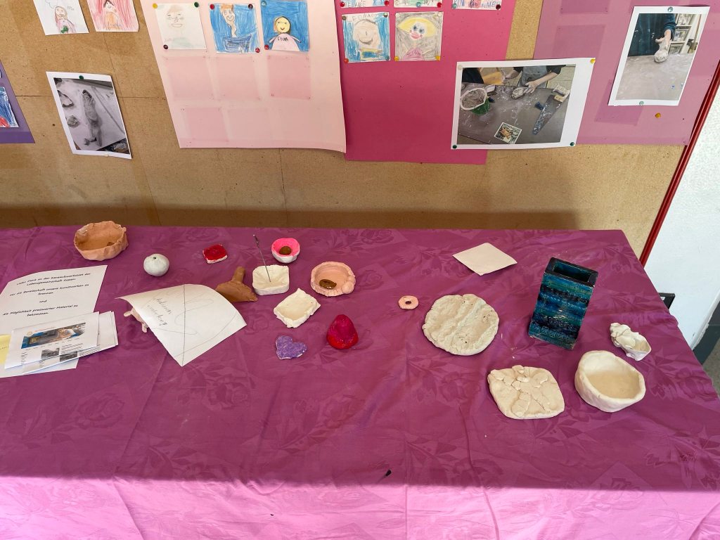 Erstellt wurden die Werke in den Arbeitsgemeinschaften Töpfern (unter der Leitung von Frau Constant), Aquarell- und Pastellmalerei (unter der Leitung von Frau Sündermann-Otto) und und der AG Werken (unter der Leitung von Herrn Frick). Nach den musikalischen Vorführungen konnten schließlich die Kunstwerke bestaunt werden.